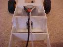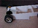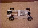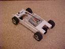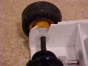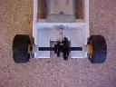 Second Prototype Slot Car ChassisThe motor on this slot car chassis has been raised at an angle as the height of the motor is larger than the diameter of mini wheels and tyres. The rear axle bearings can be pushed in or out making the axle removable. The motor is held in the same way as with the First Prototype Slot Car Chassis. You will have to make do with just the pictures for now. I will add more text later.